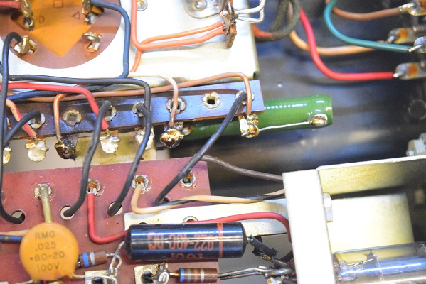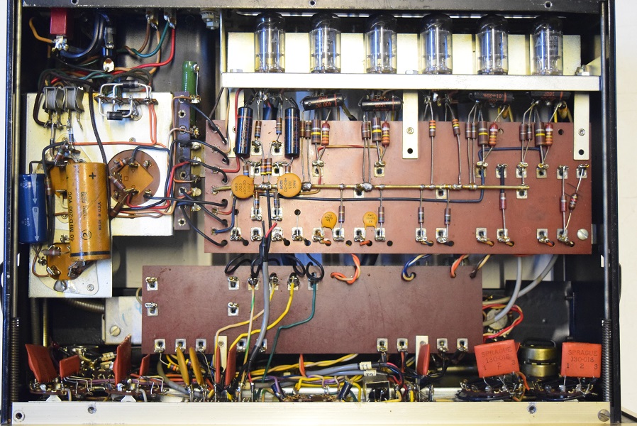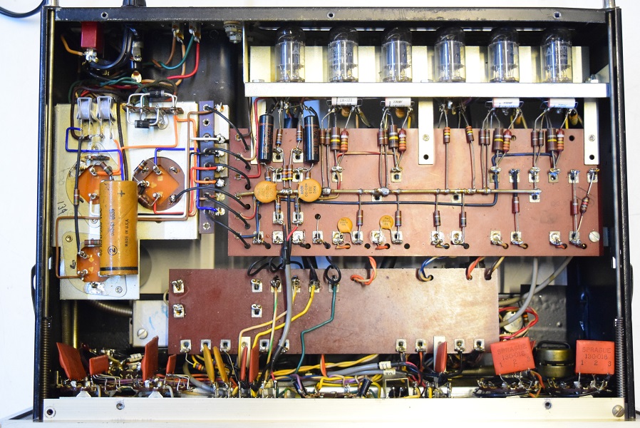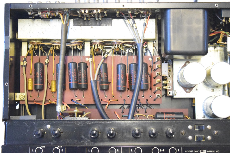 内部上面です。 後期型なのでカップリングコンデンサーは全て160Pが使われています。