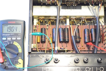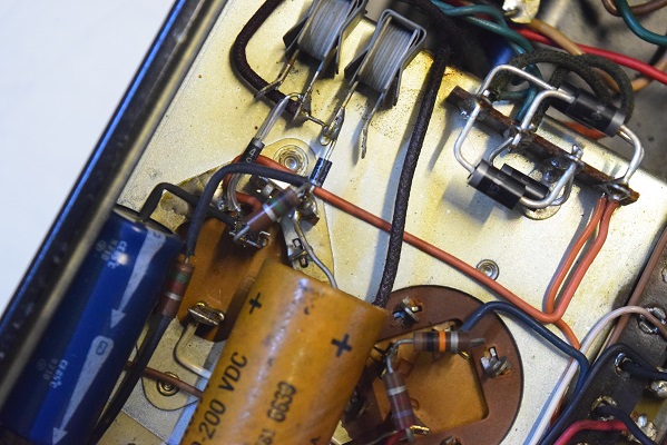 前に他の修理屋さんで電源回路の修理を行なわれていますが、この修理を行う前は電解ブロックコンデンサーやセレンも不良なので、かなり低い電圧で長い間使われていたと推測します。