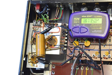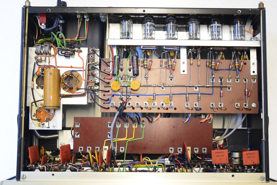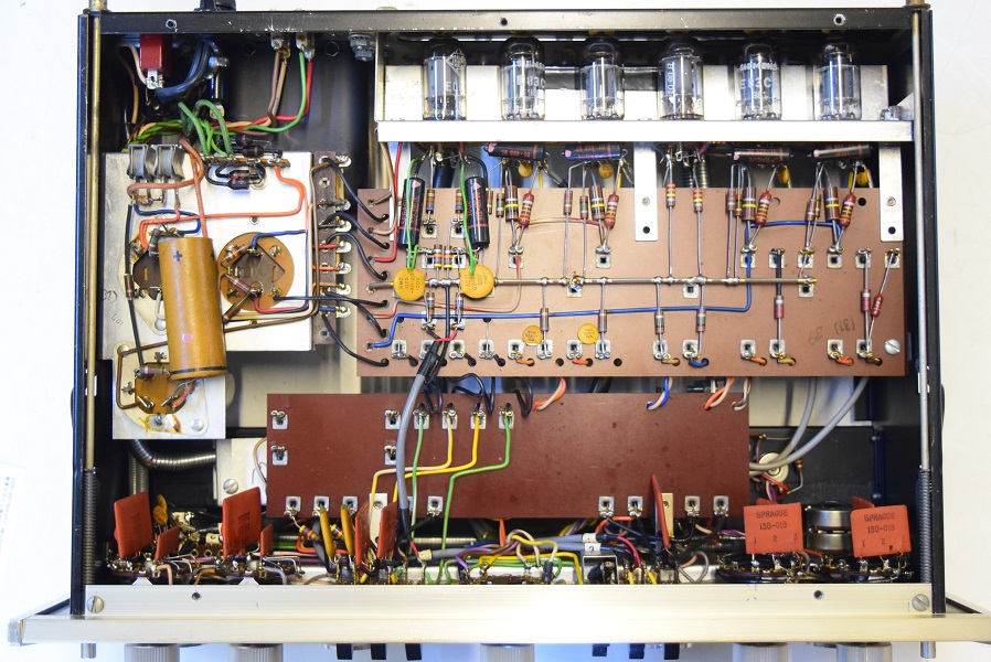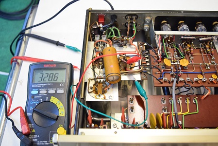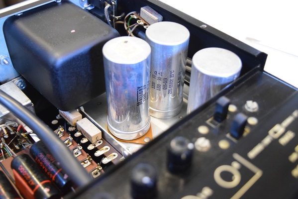 内部上面です。一部のコンデンサーの160Pを他のコンデンサーに交換しました。