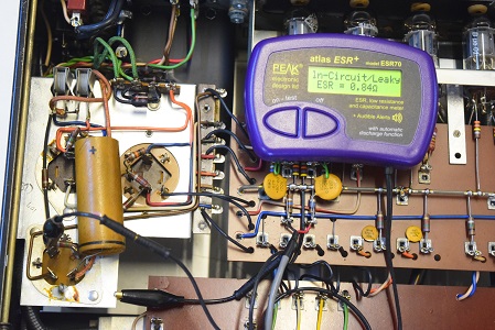 ★電源投入前の電解ブロックコンデンサーのチェックです。
