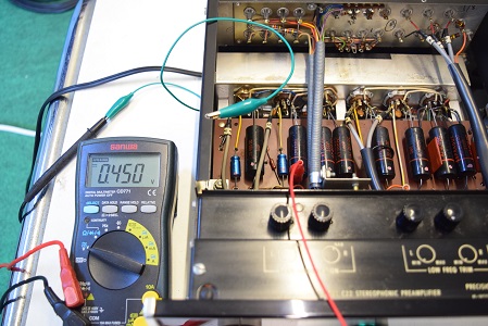 ヒーター電圧です。 23.58Vとかなり高い値です。ここまで高いと全真空管のヒーターの劣化が早くなります。