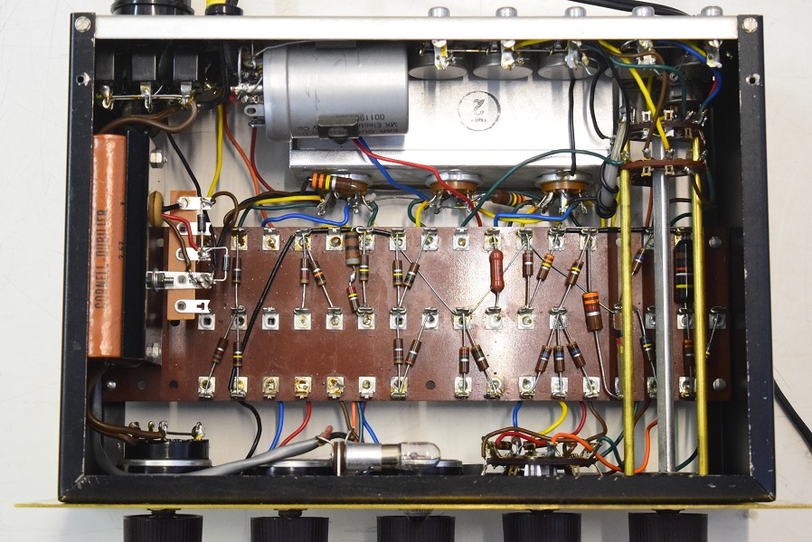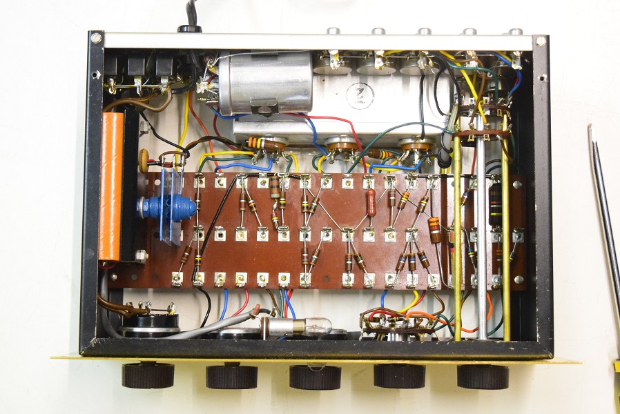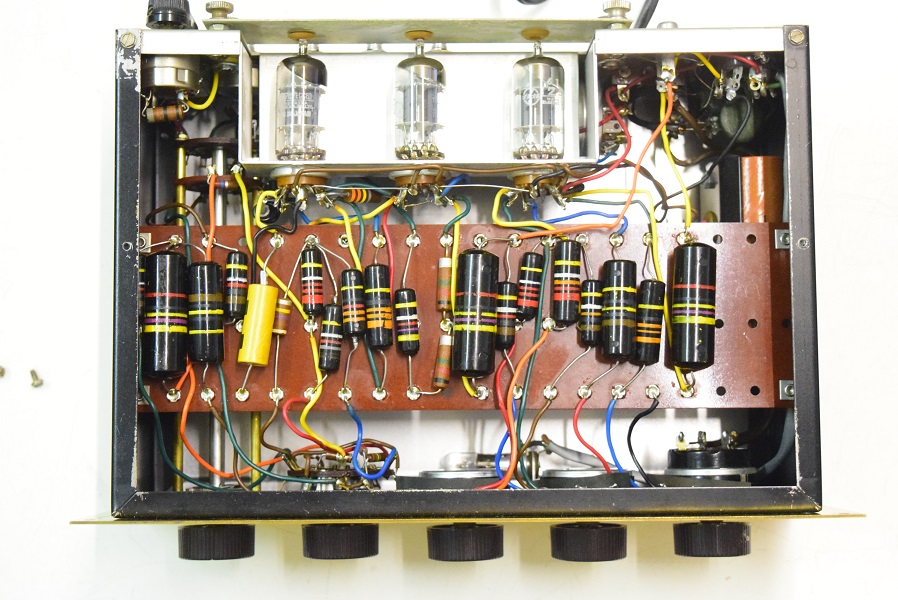 中は余り変りませんがトーン回路以外の主要カップリングコンデンサーを良品に交換しました。フォノイコのカソードバイパスコンもSPRAGUEの新品に交換しました。