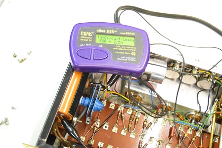 カソードバイパスコンです。ESRが極めて高い状態です。