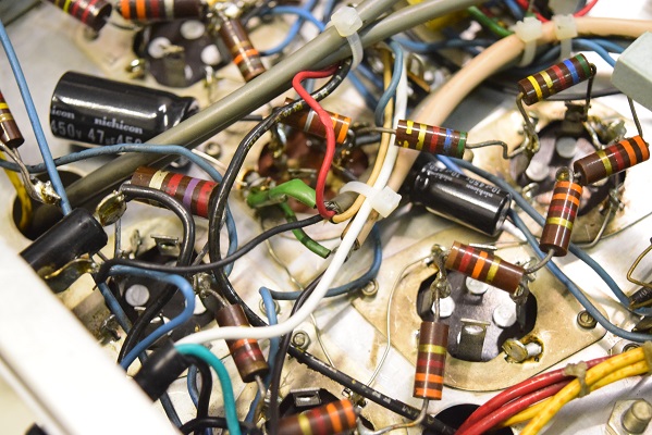 真空管が8本もあります。全て12AX7です。恐らくトーン回路にミッドレンジを設けているのでその分増幅回路が多くなったのでしょう。