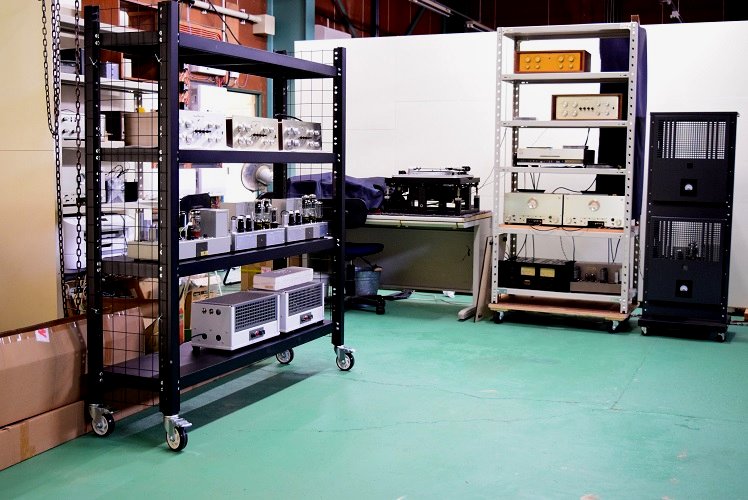 (2022.8,6) 漸く全ての機器の移設が完了しました。 ラック上段はMarantz7 10070番台グリーンで、その下の段は当工房オリジナル MKe-1。