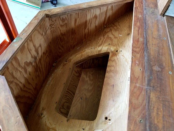ウーハーを外してみました。内部も全て独特な紋様の米松合板です。造りは左右で少し違います。当時はモノーラル時代なのでロットに依って違うのは当然です。