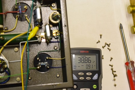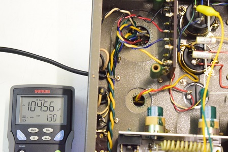 電源トランスの配線を組み直してチェック後アンプ本体に取付け各電圧のチェックです。
