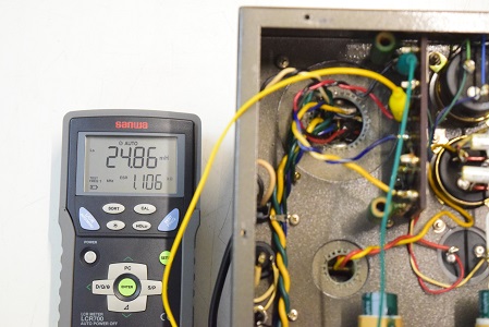 ★上の数値を比較すると、入力のRCAジャックが白のものより赤のものが2次側の高圧とバイアスのインダクタンスが高く、この時の1次側は逆に低く出ています。 (上記計測は全て1kHzの交流信号による測定結果です。)