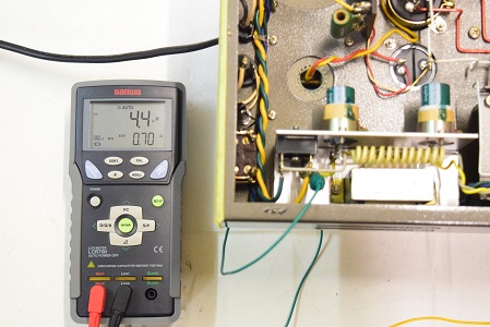 ★これ等を総合的に見ると、やはり入力ジャック赤の方の電源トランスが漏電し、各インダクタンスも高くなっています。電源トランスの巻き替えが必要です。