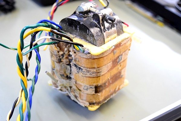この為、色々検討しましたが近くにトランスを作る所があり、何とか巻き替えはできるということです。 しかし、エポキシで充填されているのでこれを何とかして巻線を解けるようになっていたら可能と言われました。