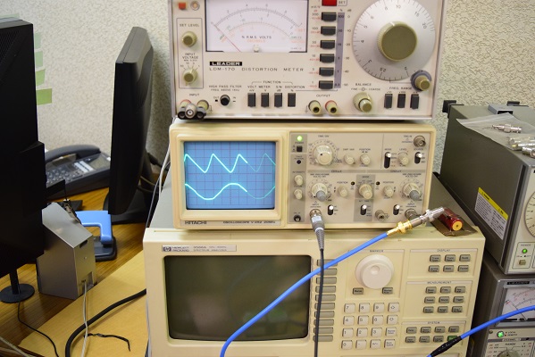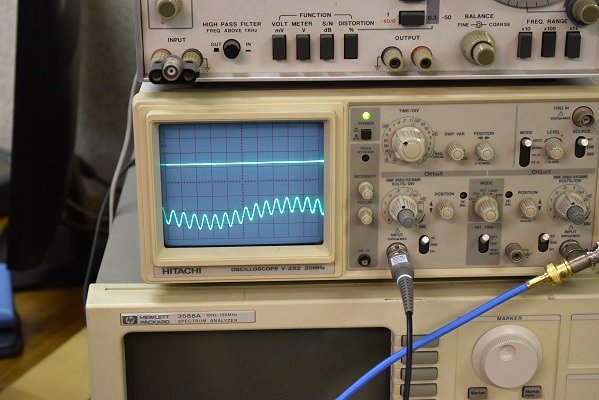 オシロは本機の出力波形です。 奇麗な正弦波が出ています。