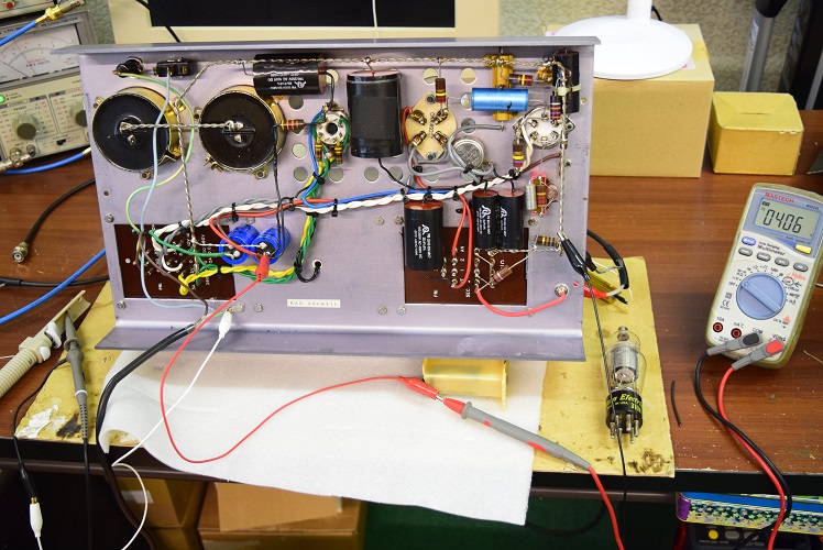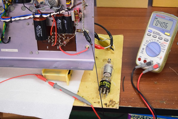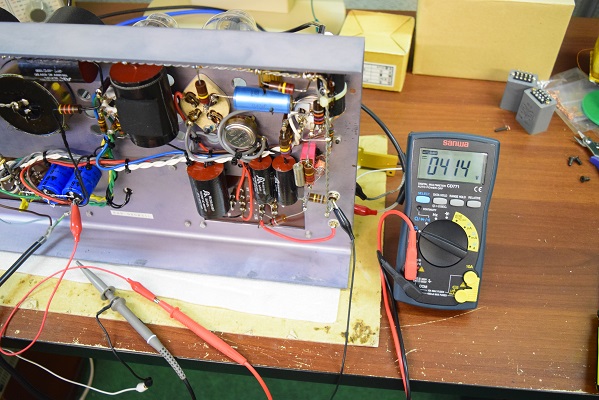 真空管が温まる前の電源投入後数秒で出るので内部回路だと推測し、そのままになっていましたが本日詳細に検査を行ってみました。