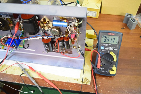 高圧B2で300Bのドライブ電圧です。 331.7Vで良い値です。