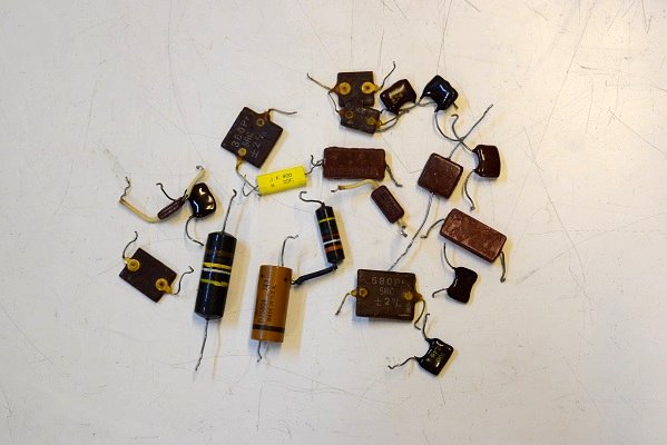 交換部品です。大量の抵抗とコンデンサーがあります。