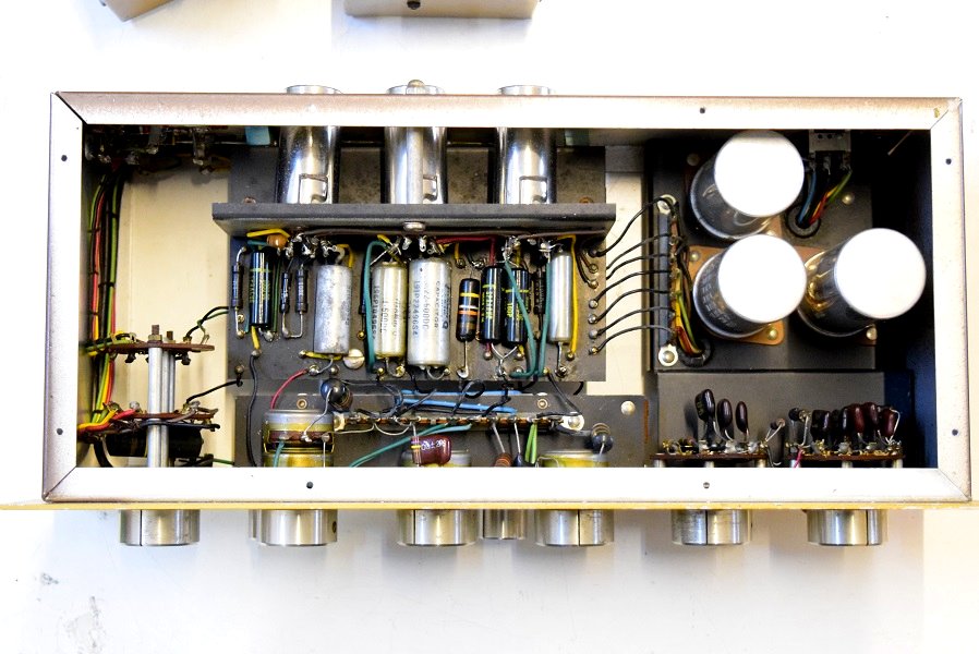 裏面です。電源回路は前のレストアで電解コンデンサーを追加されています。