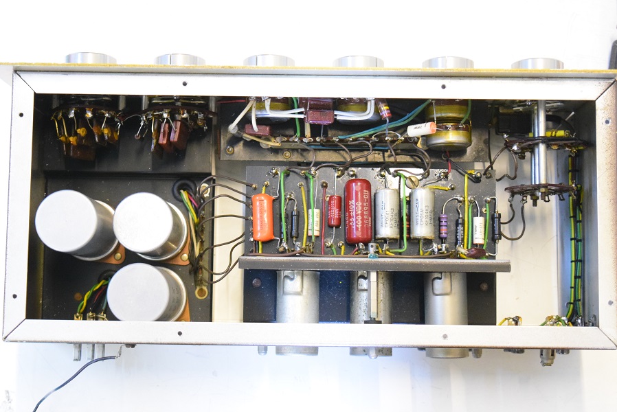 内部上面です。左のBとは違うコンデンサーでレストアされています。