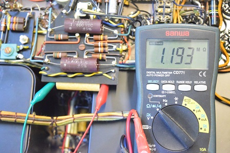 もう片側の出力管のカップリングコンデンサーです。こちらは222.3kΩと完全に絶縁不良です。