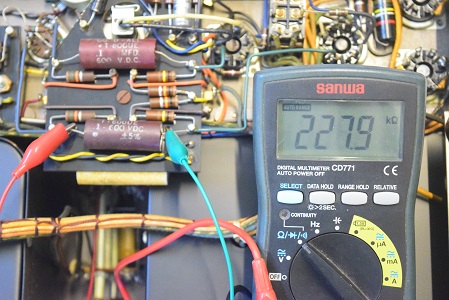 もう片側の出力管のカップリングコンデンサーです。こちらは227.9kΩと完全に絶縁不良です。