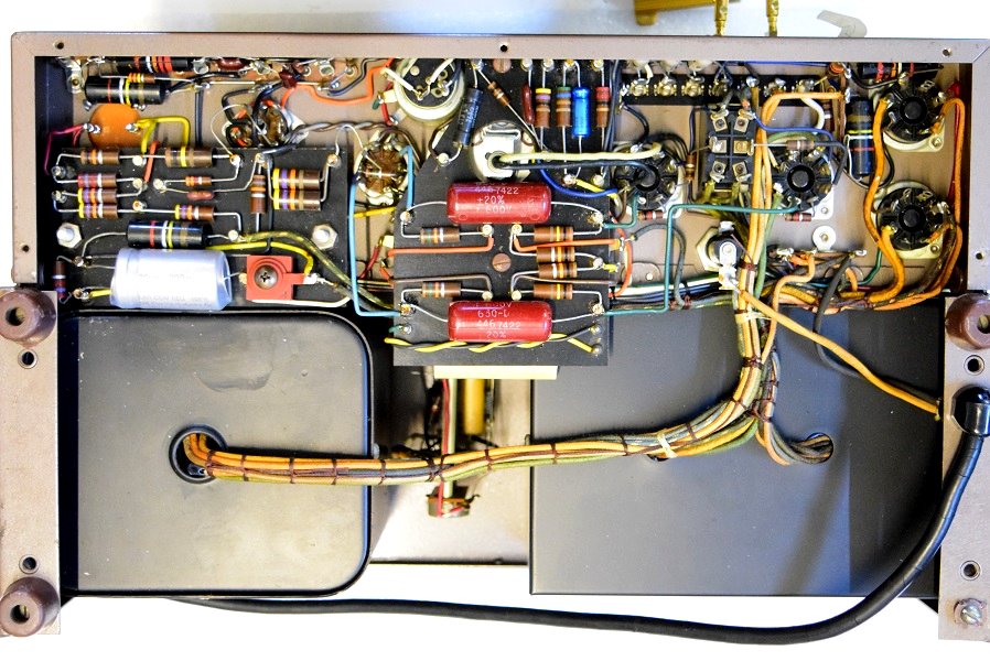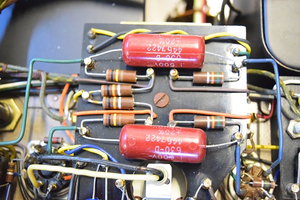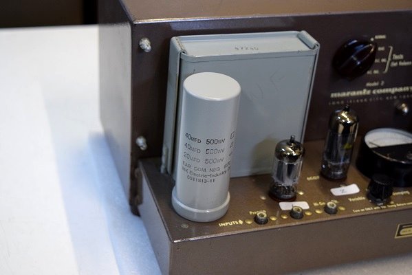 バイアスセレンとバイアスC電源の電解ブロックコンデンサーを新品に交換しました。どちらも正規仕様の為、内部もオリジナル状態です。 出力管のカップリングコンデンサーをMarantz2純正GoodAll-TRWのNOS品に交換しました。