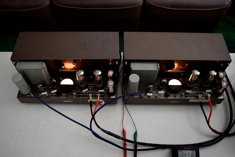 バイアスが全く取れない状態では2台とも電源を入れるのは危険と判断します。